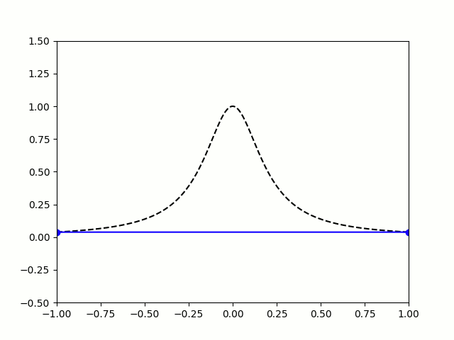 on . This function is a version of Runge’s function (also known as the Witch of Agnesi).